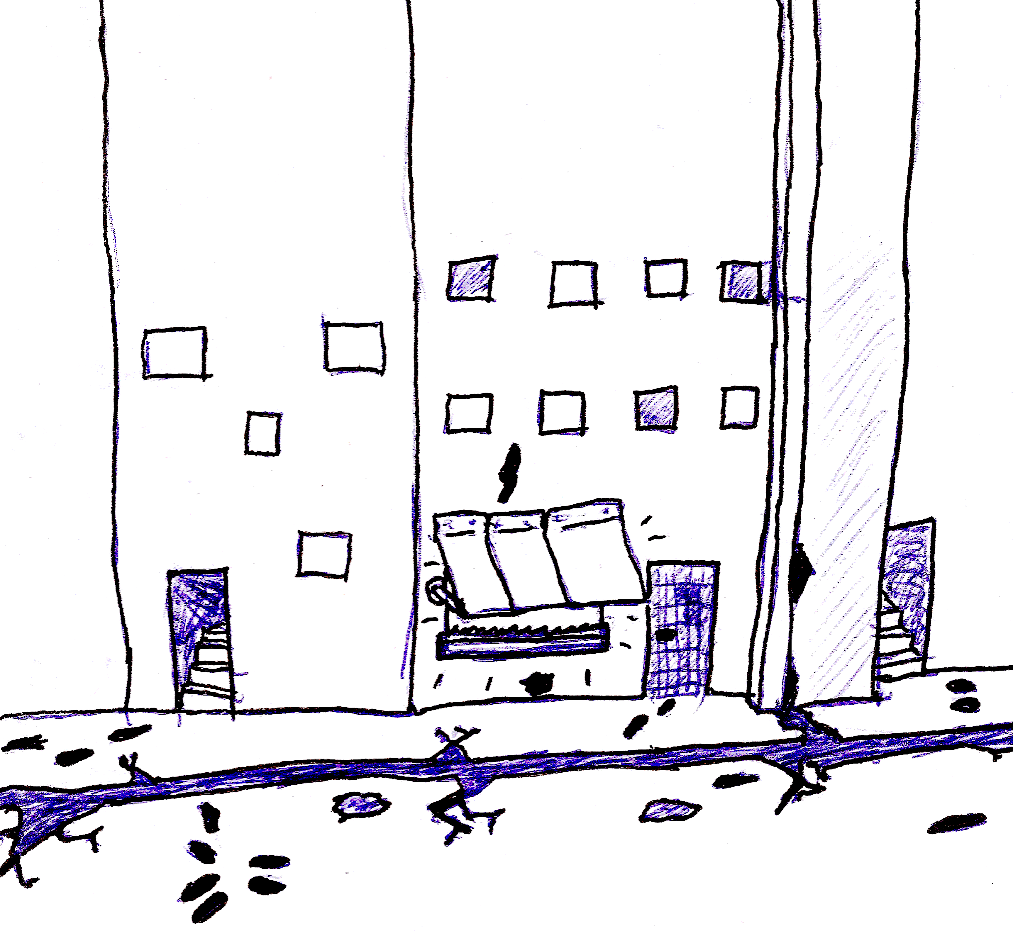 Es stehen andere hier, in einer leergefegten Häuserschlucht. Was seht ihr?