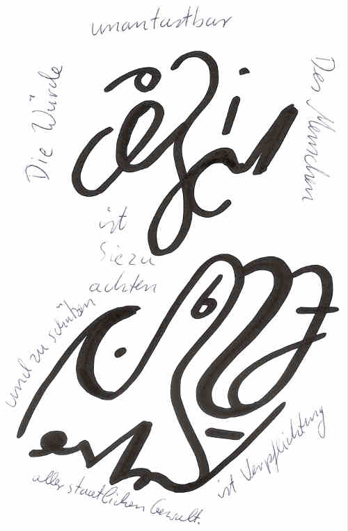 Die Würde des Menschen ist unantastbar. Sie zu achten und zu schützen ist Verpflichtung aller staatlichen Gewalt. — Artikel 1, Absatz 1, Grundgesetz.