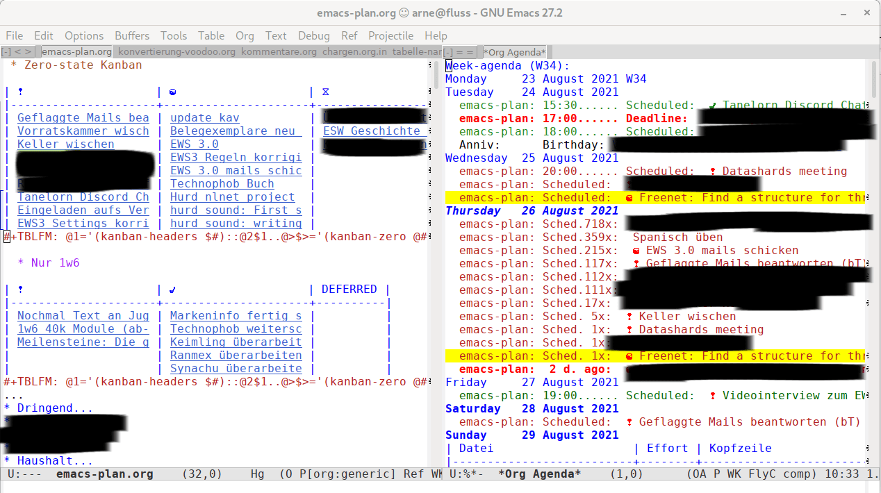 It’s a custom agenda combined with kanban.el and optimized TODO states.